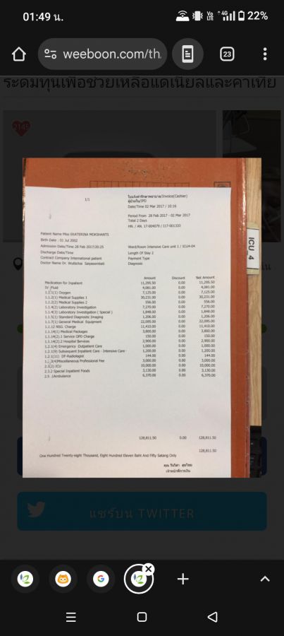 The medical bills have now exceeded 300,000 baht, and they're rising every day.
