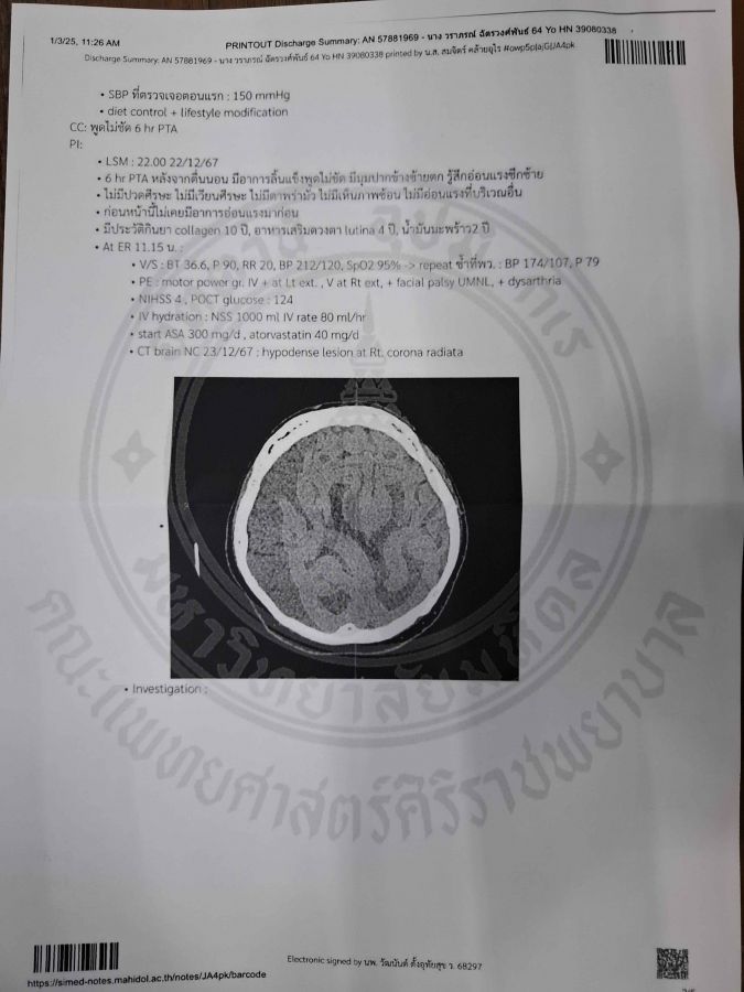 My mother, Waraporn, has been suffering from a ruptured brain blood vessel (hemorrhagic stroke) since September.